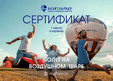 Выбирайте сертификат на полет на воздушном шаре, цена на который варьируется в зависимости от набора предоставляемых услуг, или заказывайте полет прямо сейчас!